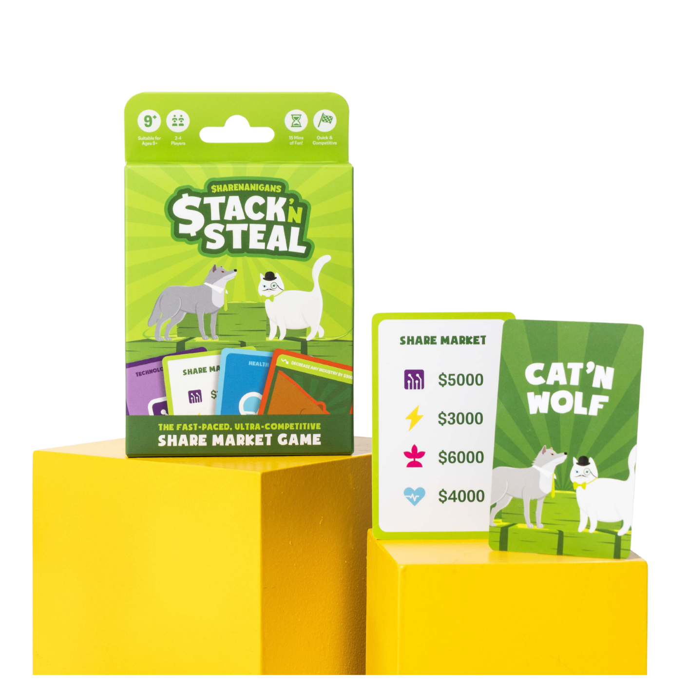 We’ve taken our beloved Sharenanigans board game and made it into a fast paced, ultra competitive card game!